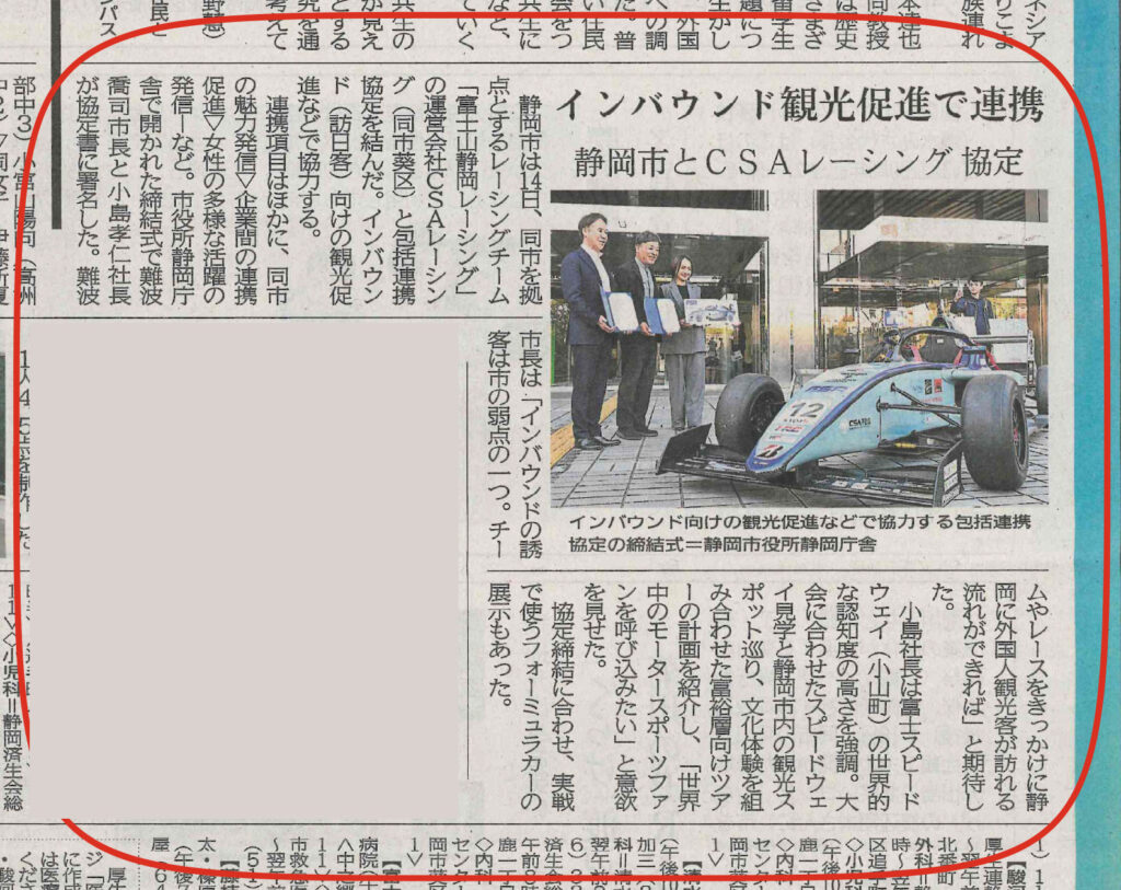 2025年11月14日、富士山静岡レーシングの運営会社であるCSA racingは、静岡市と観光振興や地域活性化を目的とした包括連携協定を締結しました。