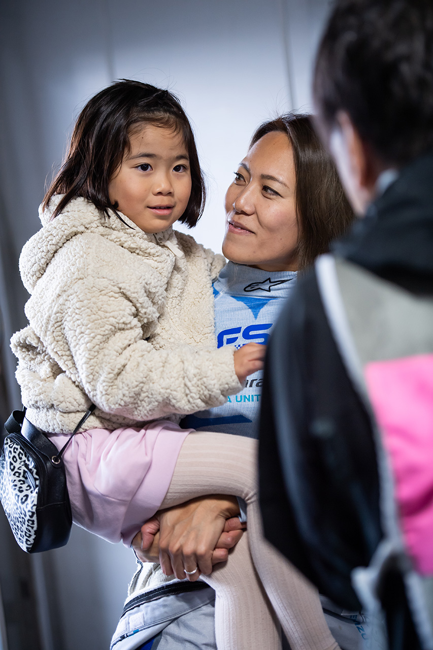 細川 由⾐花は業界では「⽇本初のレーサー夫婦」として知られる1男2⼥の3児の⺟の顔も持った⼥性ドライバー。