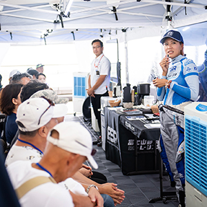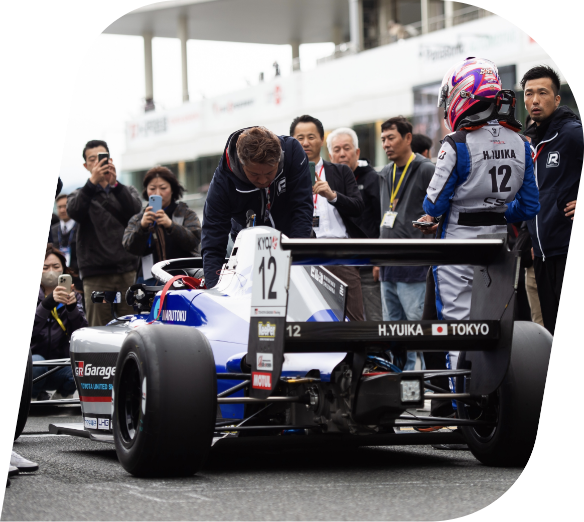 我々がレース業界に参⼊した目的として、「静岡から変える⼥性活躍社会、⽇本の基幹産業の発展」をスローガンに、静岡県内の企業の協力を得ながら『インバウンド促進』『⼥性活躍社会の実現』『自動車産業の持続可能性向上』の3つの社会課題をKYOJO CUPというコンテンツを通じて解決していきたいと考えています。