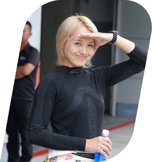 2017年9⽉にレーサーであった旦那さんから気晴らしにと勧められてサーキットデビューしたことがきっかけでレーシングドライバーと⺟親の⼆⾜の草鞋を履きながら活動中。